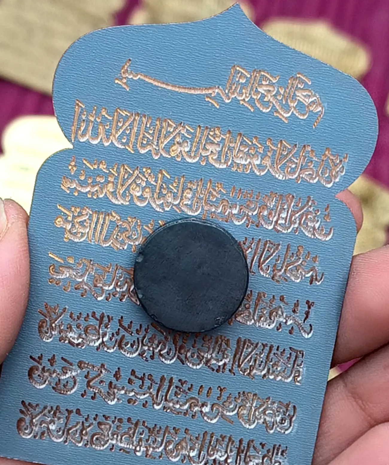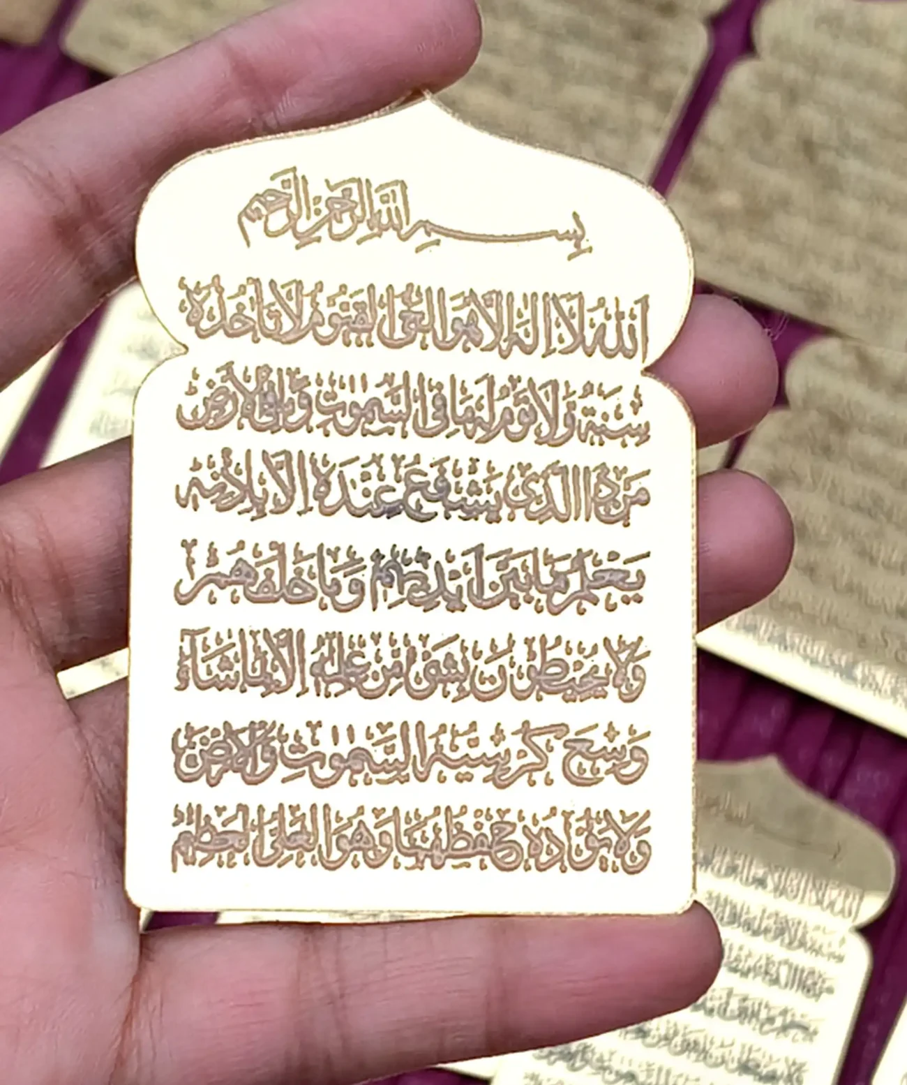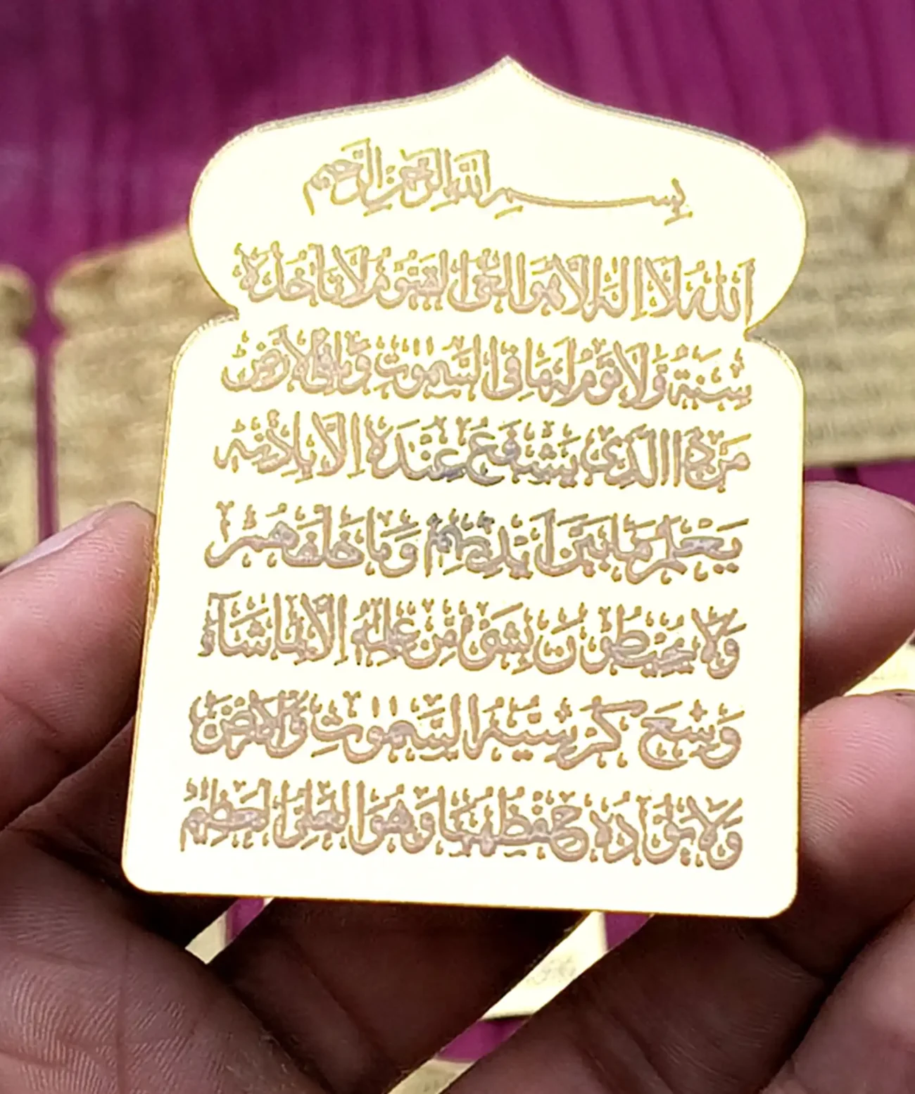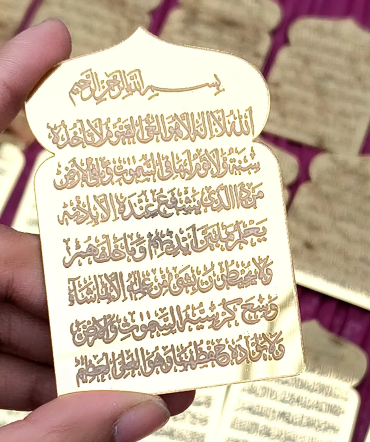 – Golden mirror acrylic with engraved Ayatul Kursi