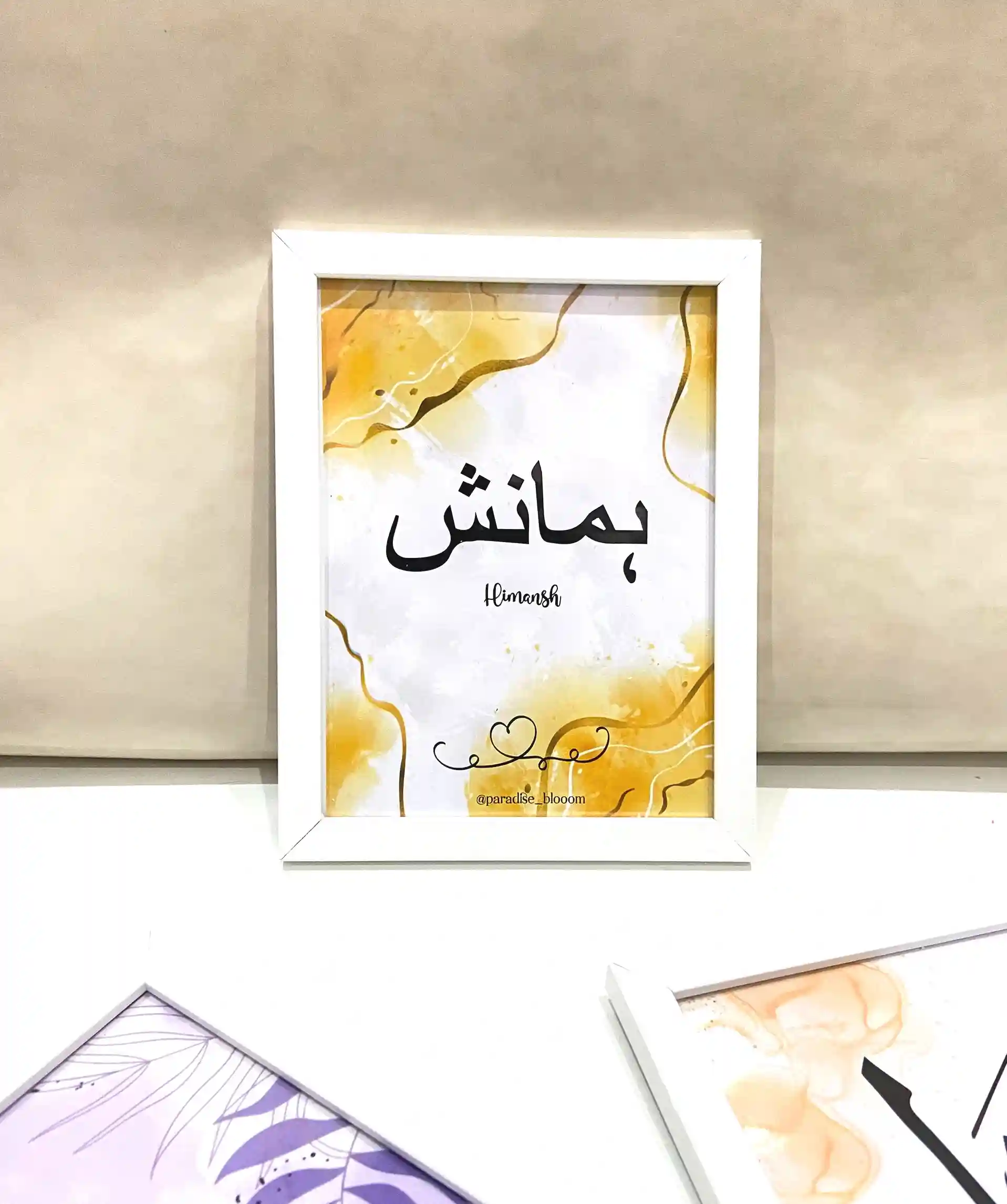 Celebrate identity, faith, and elegance with our Personalized Arabic Name Frame – a beautifully crafted piece of Islamic wall decor that adds a spiritual and aesthetic touch to any space. Each frame features your chosen name, carefully written in authentic Arabic calligraphy, creating a meaningful keepsake or gift that blends tradition with timeless design.