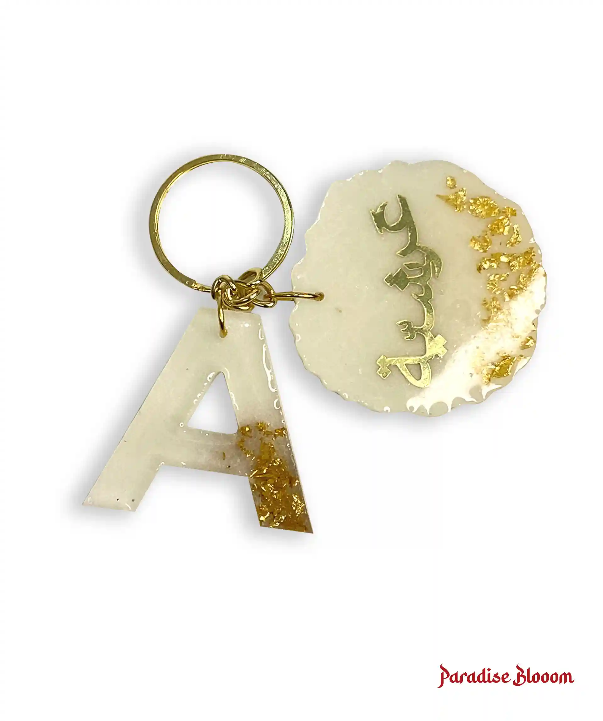 Custom Resin Keychain with Arabic Name & Initial Letter