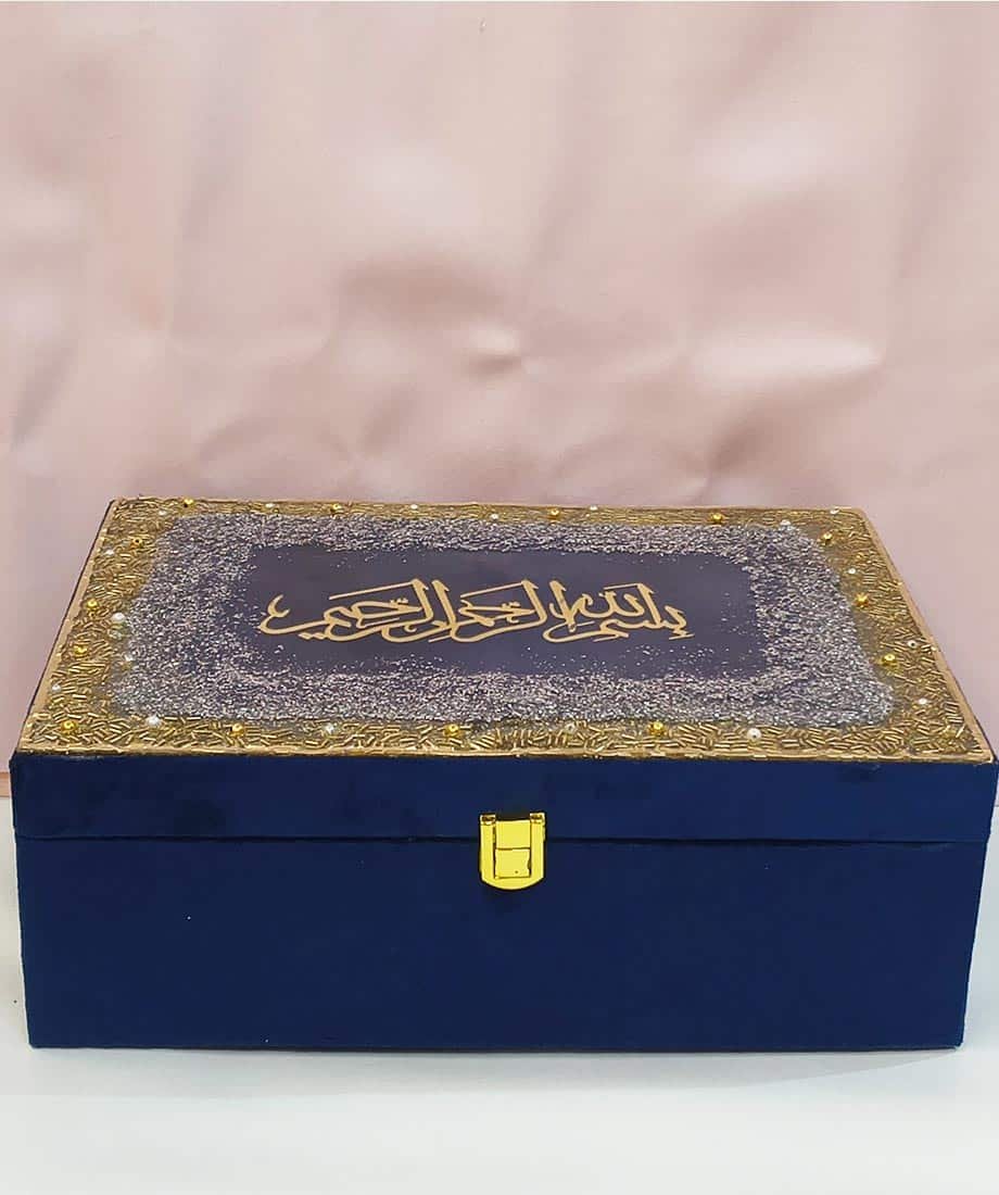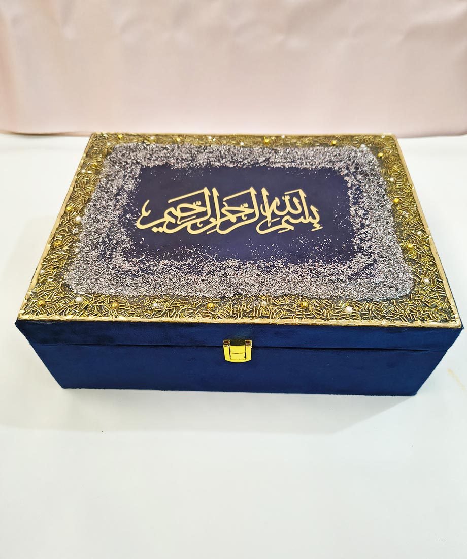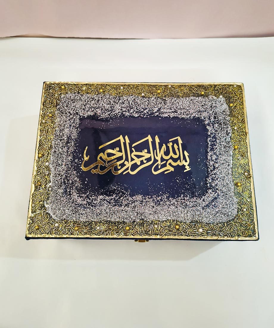 🎁 Designer Quran Box – Luxurious leather/velvet finish with handcrafted Bismillah in resin art