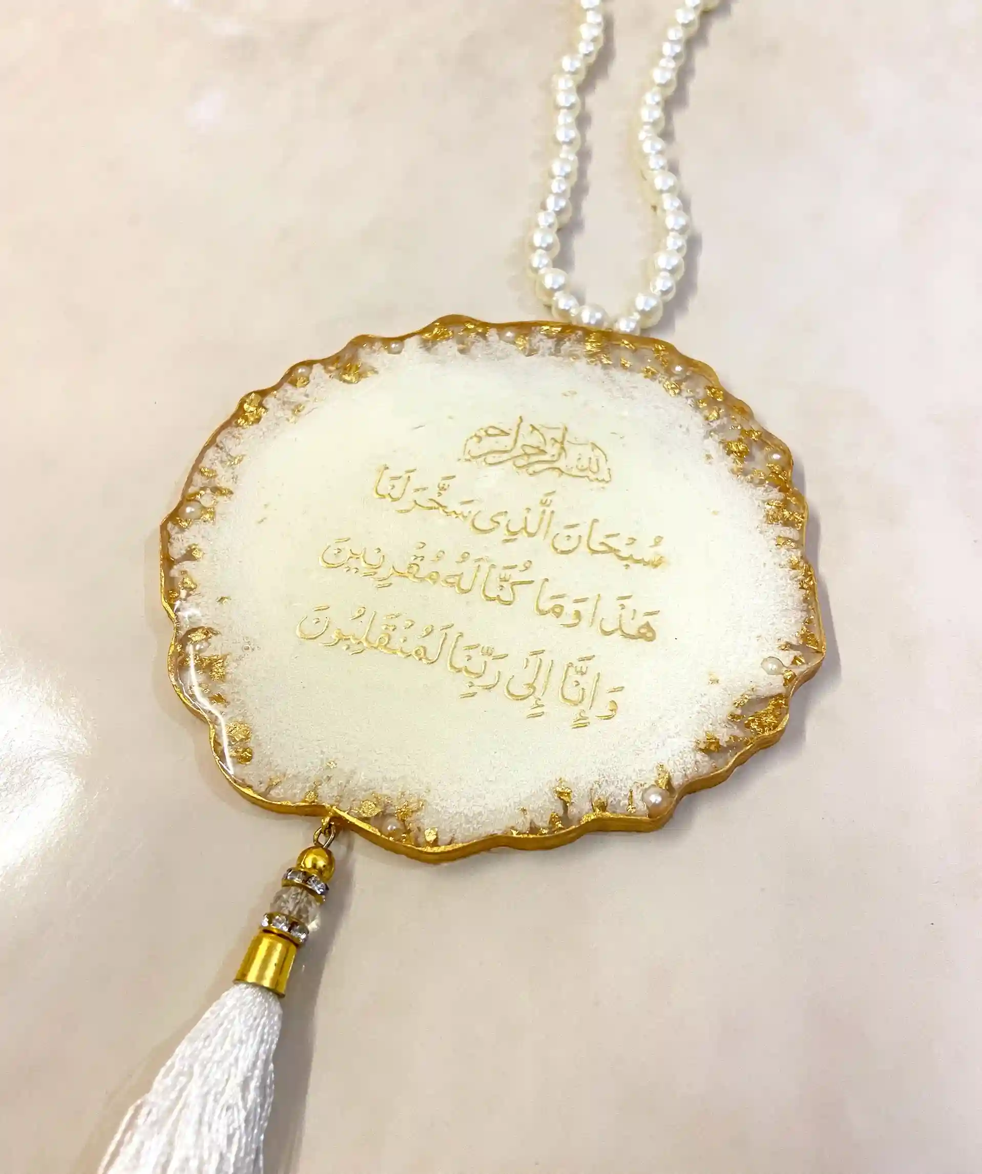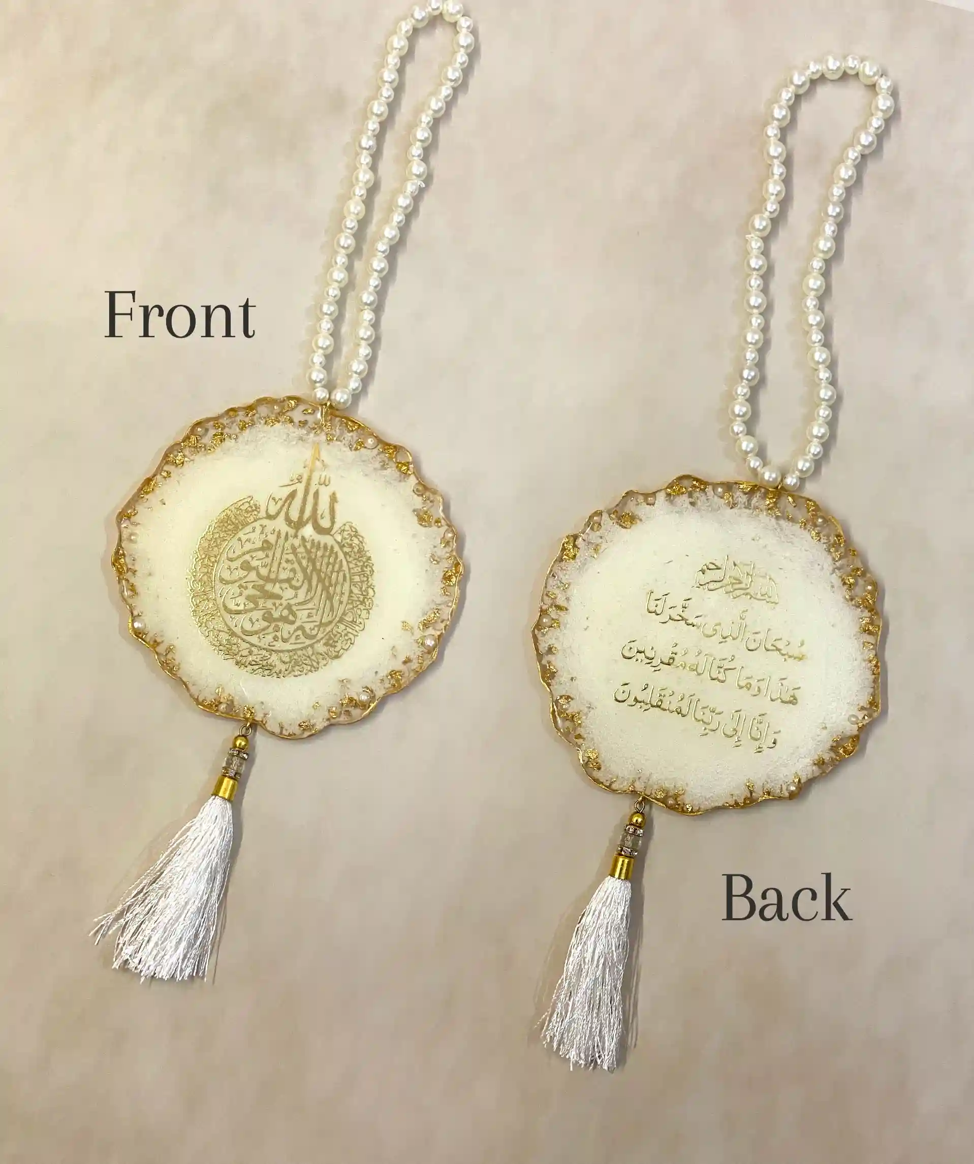 This beautifully handcrafted resin car hanging is designed to elevate your journey — spiritually and aesthetically. Featuring Ayatul Kursi on one side and the Travel Dua (Safar Ki Dua) on the other, it serves as a daily reminder of Allah’s protection on the road.