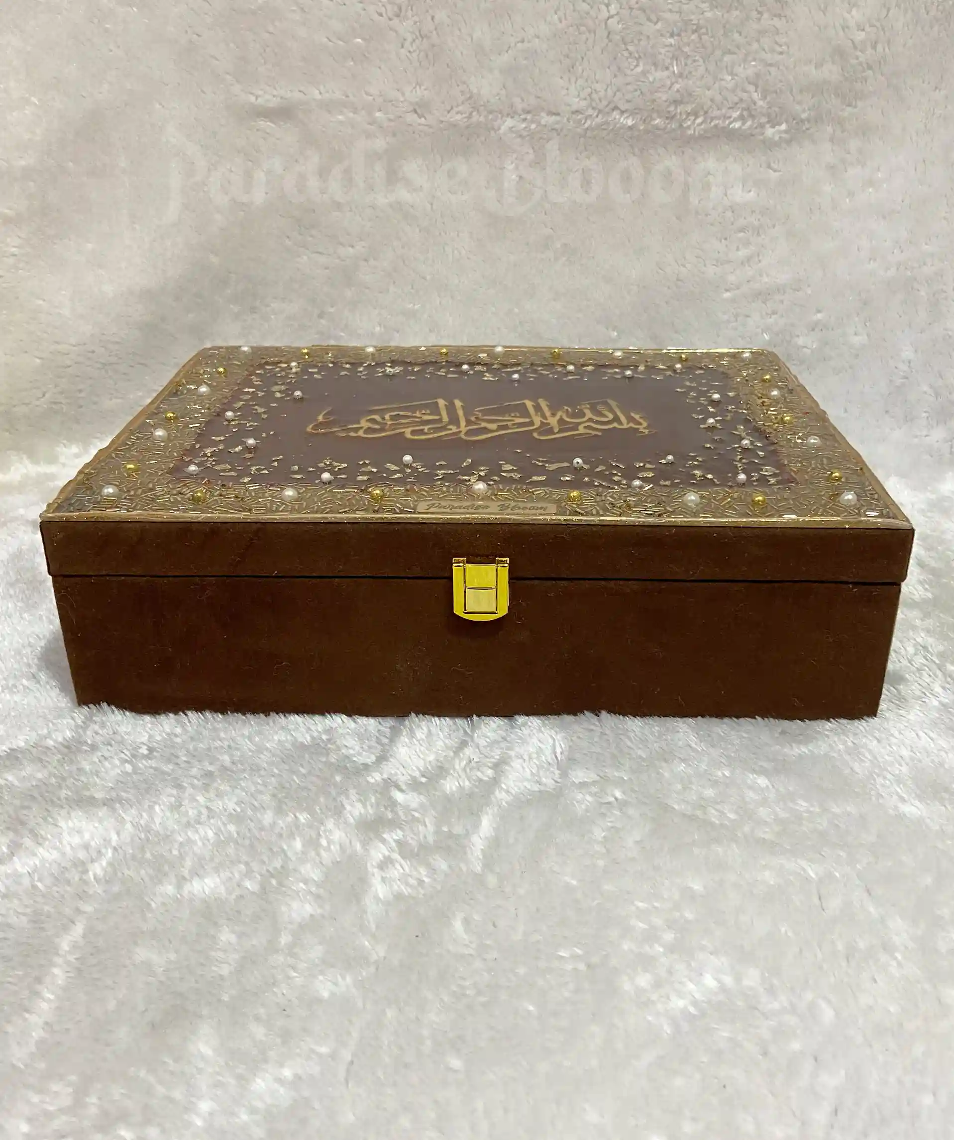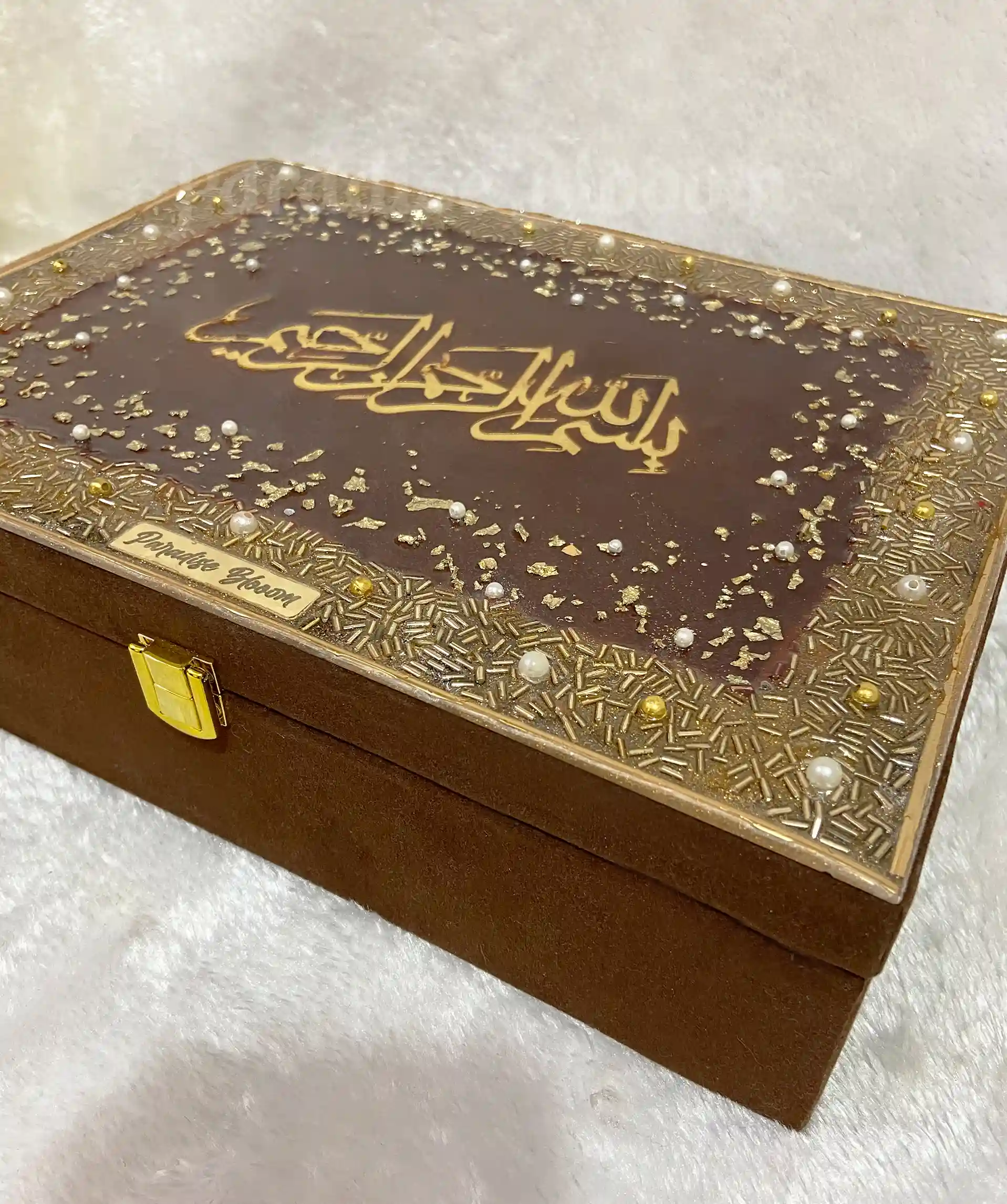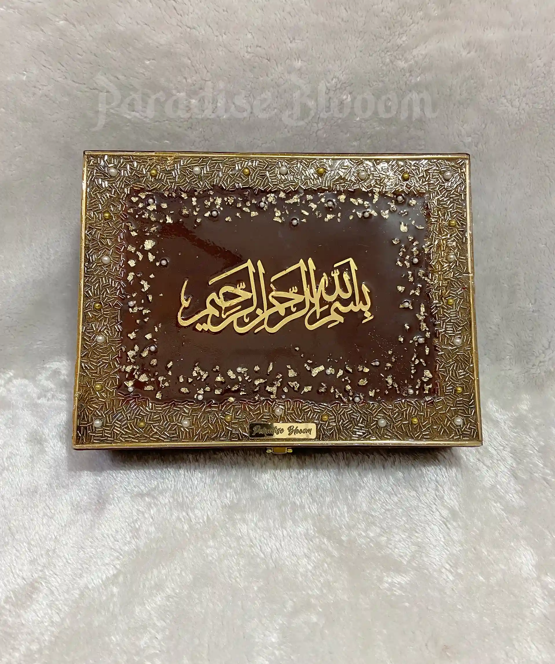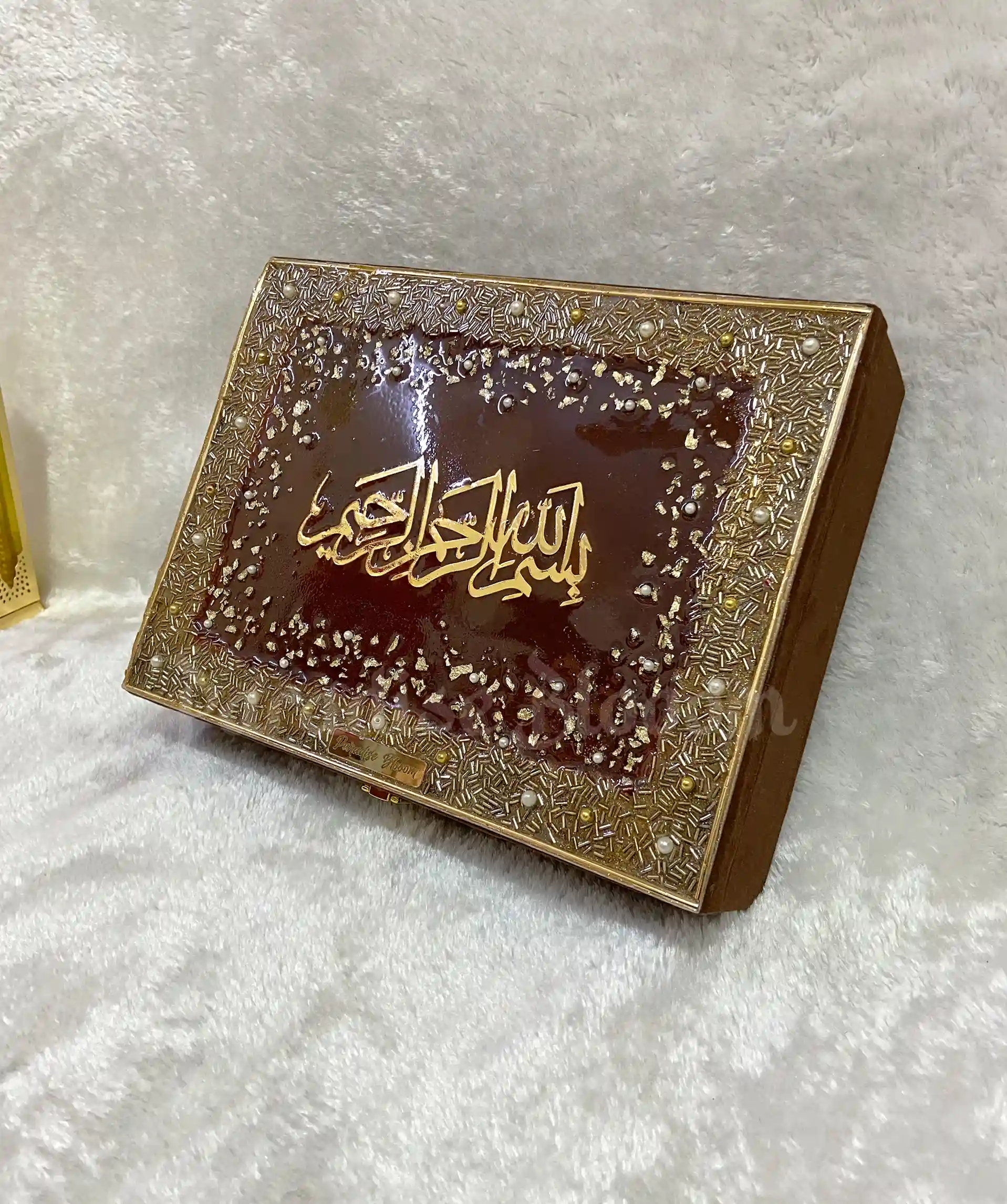 Premium Designer Quran Box With Bismillah in Resin Art – Brown