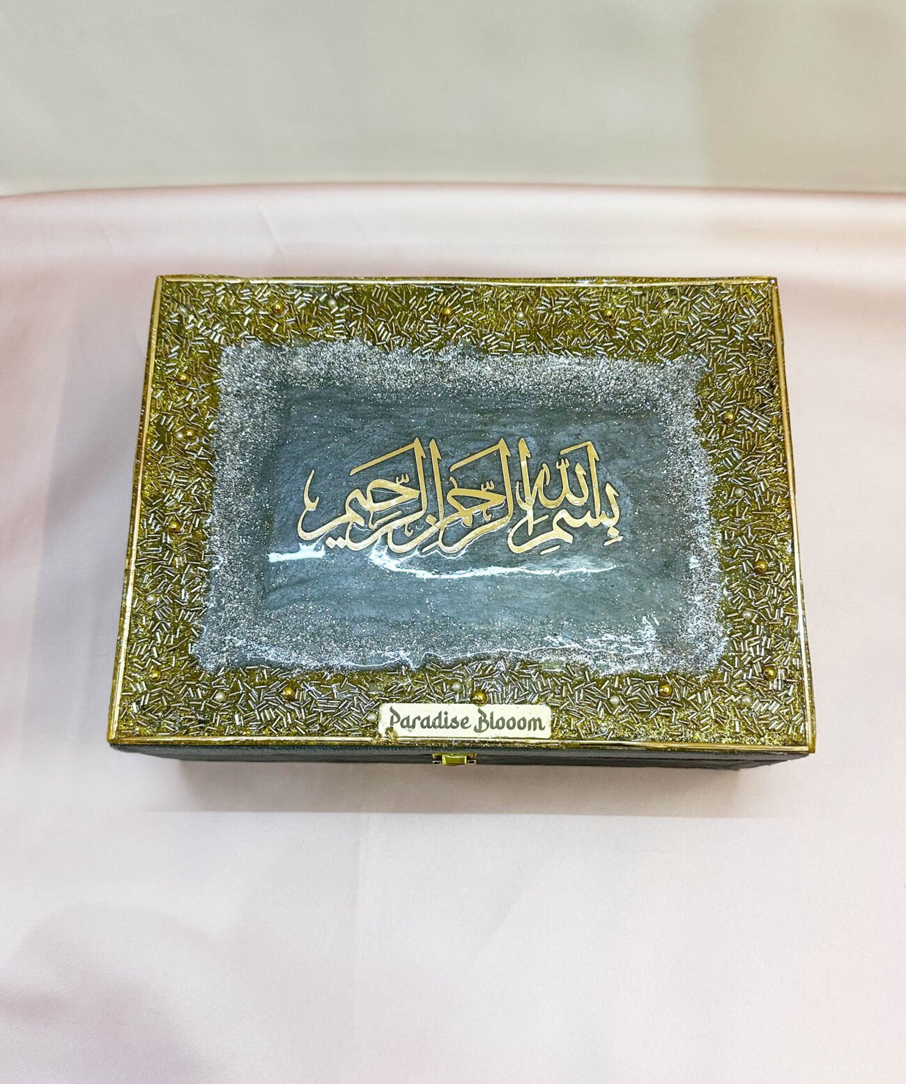 Premium Designer Quran Box With Bismillah in Resin Art – Grey