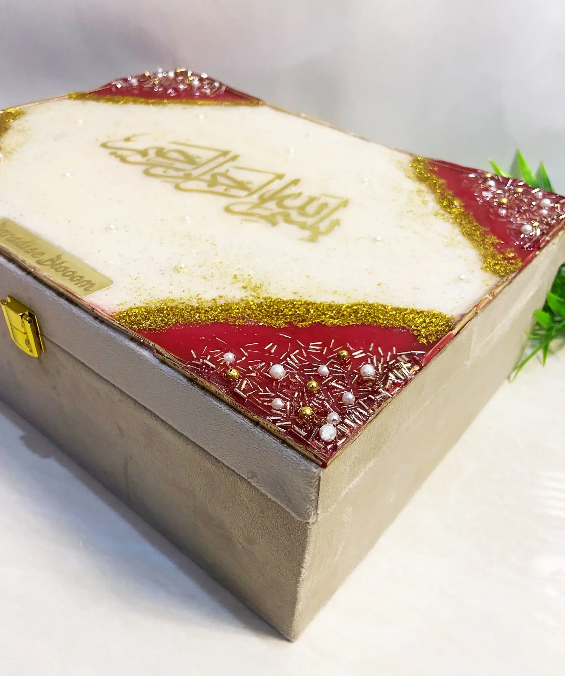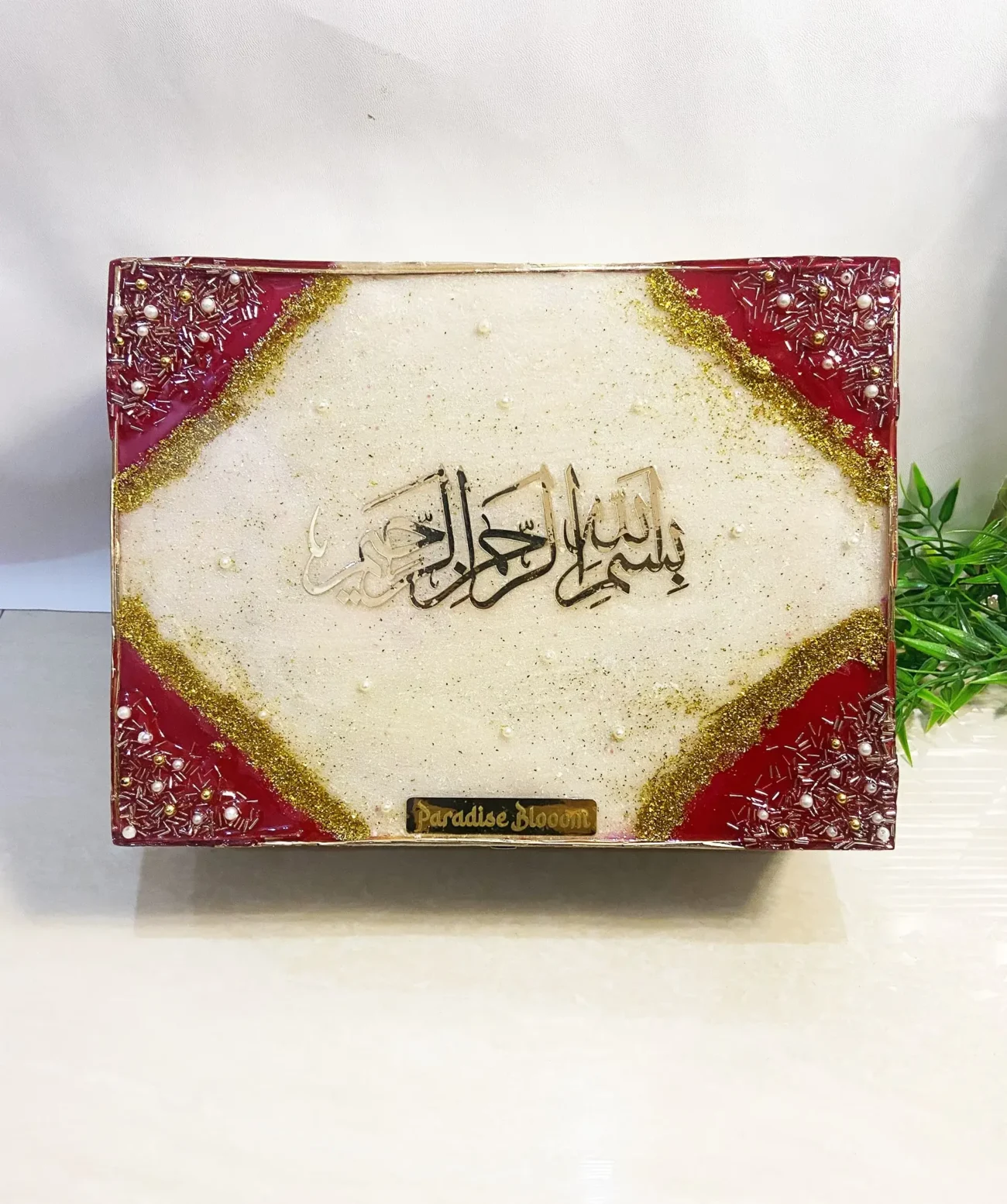 🎁 Designer Quran Box – Luxurious leather/velvet finish with handcrafted Bismillah in resin art