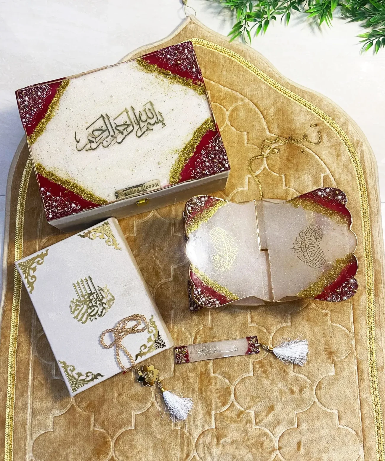 Each item in this set is a reflection of timeless beauty and spiritual meaning — a perfect gift for brides, a Ramadan hadiya, or a cherished addition to your own prayer space.