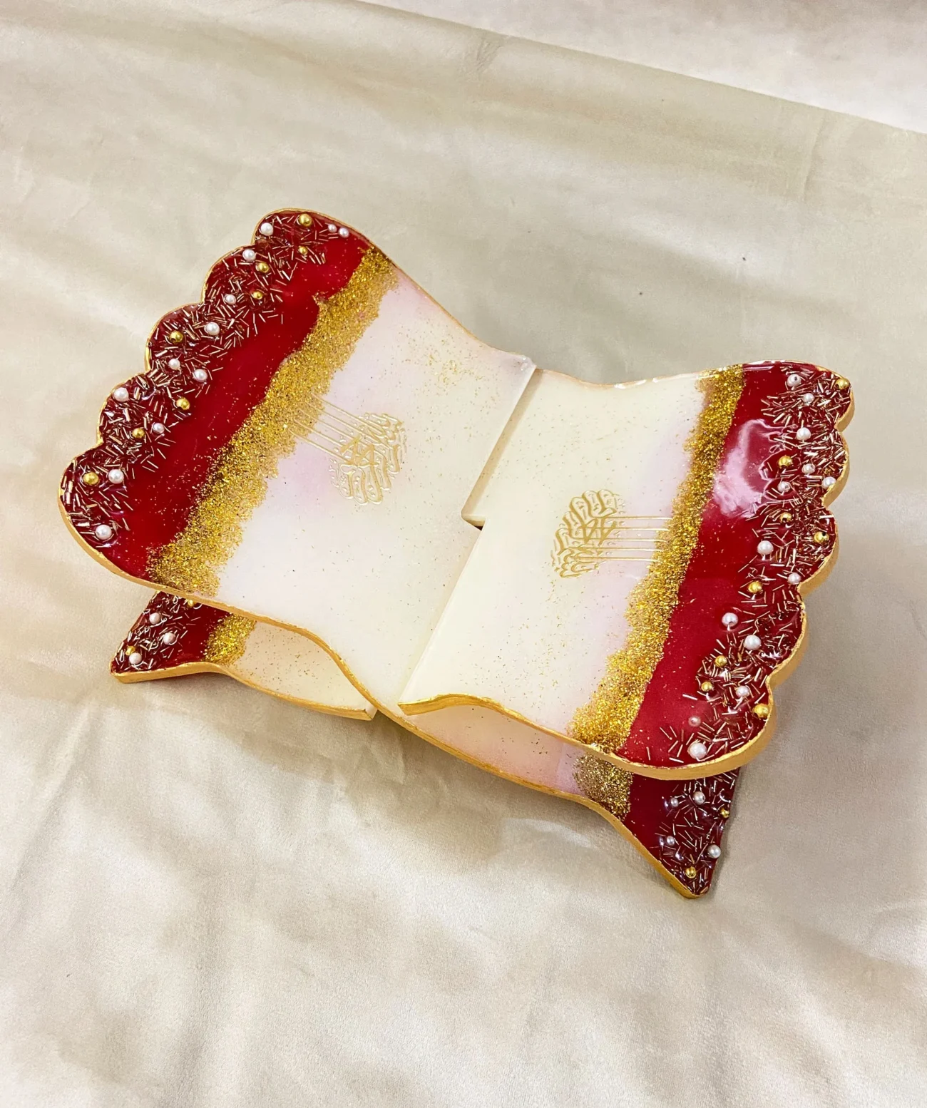 Elevate your ibadat experience with our premium handcrafted Resin Rehal, a graceful stand designed to hold the Holy Quran with love, respect, and beauty.