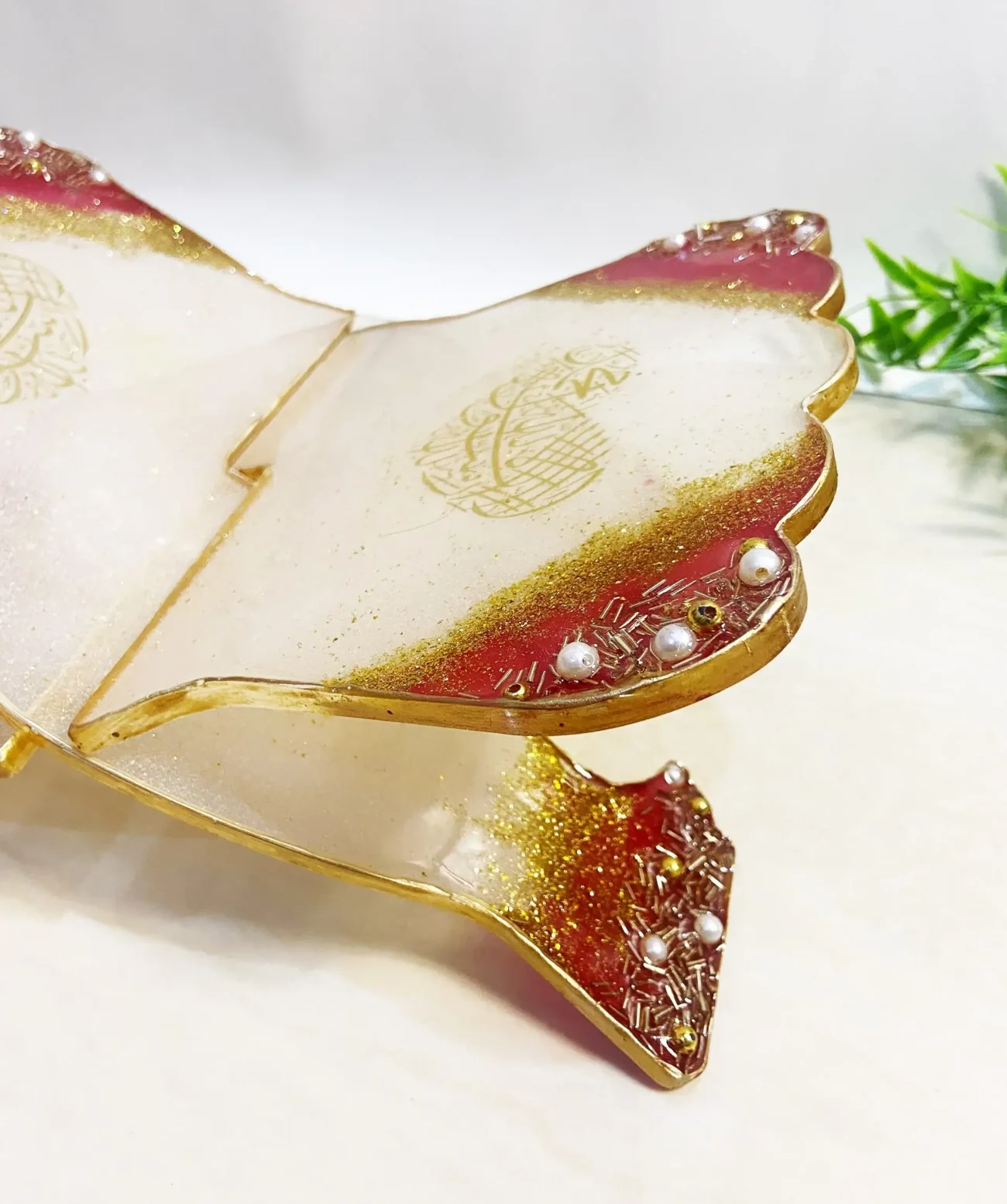 Each Rehal is lovingly poured and crafted by hand, using high-quality, durable resin — ensuring clarity, strength, and a stunning glass-like finish. Delicate accents like gold flakes, floral elements, or butterflies are added within the layers, making every piece unique and deeply meaningful.