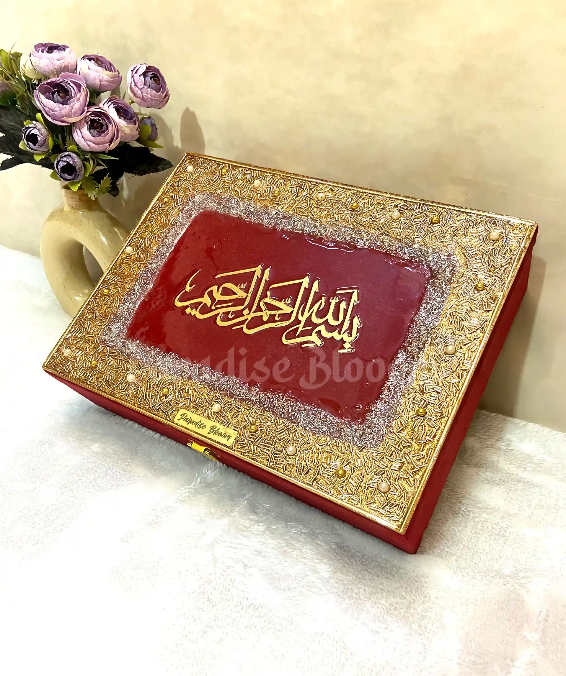 🎁 Designer Quran Box – Luxurious leather/velvet finish with handcrafted Bismillah in resin art
